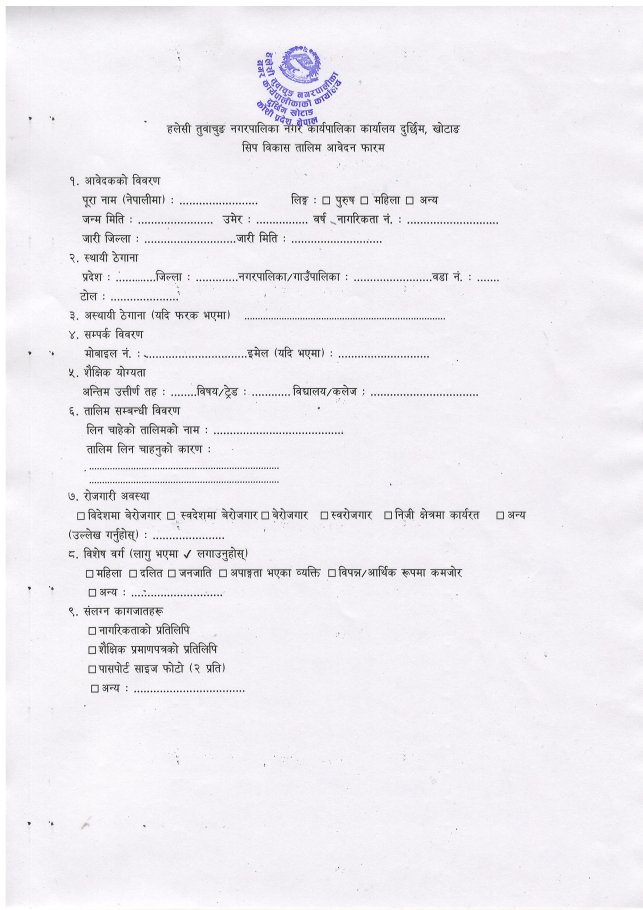 » व्यवसायिक सीप बिकास तालिम सम्बन्धी सूचना ।