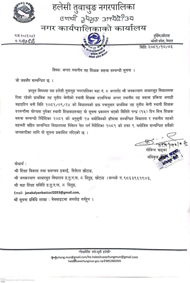 अन्तर स्थानिय तह शिक्षक सरुवा सम्बन्धी सूचना ।