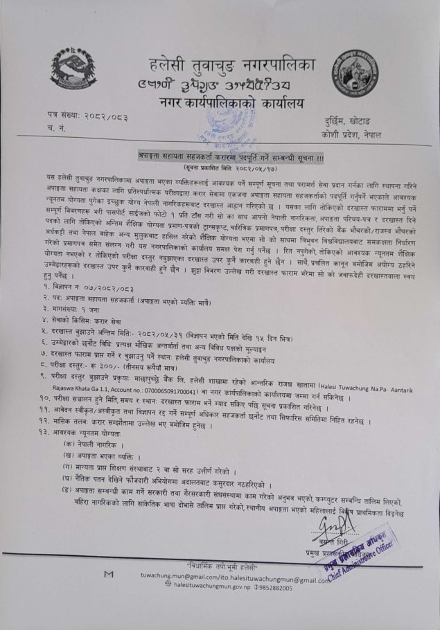 » अपांगता सहायता सहजकर्ता करारमा पदपूर्ति गर्ने सम्बन्धी सूचना ।