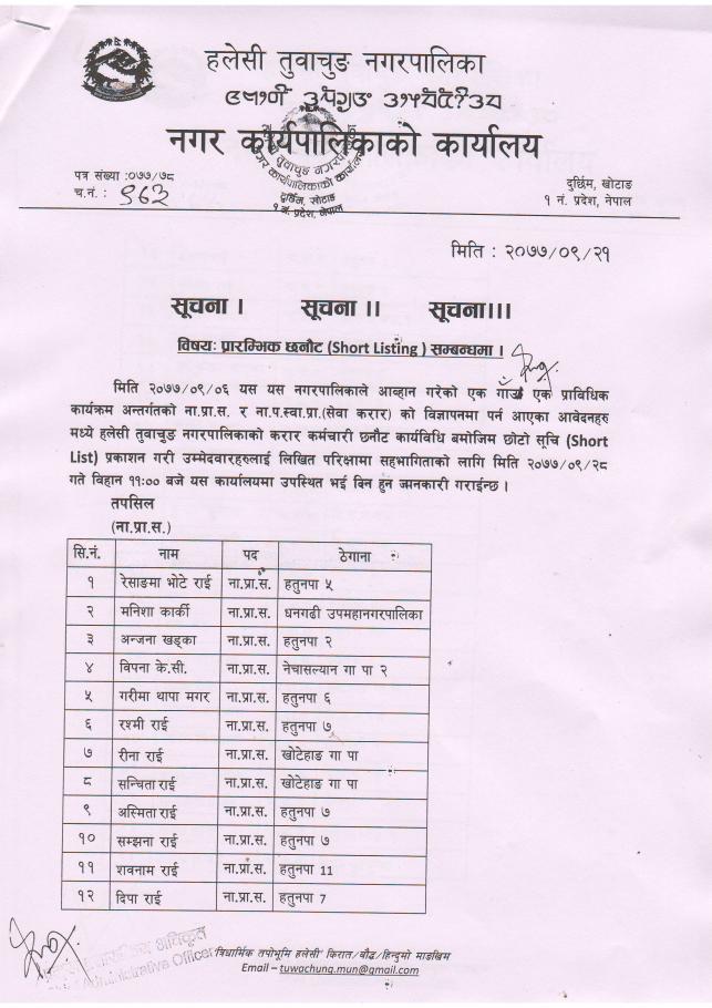 » ना.प्रा.स. र ना.प.स्वा.प्रा. को प्रारम्भिक छनौट (Short Listing) सम्बन्धमा
