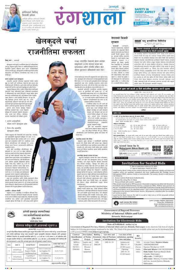 सडक स्तरोन्नती समबन्धी ठेक्का आह्वान गरिएको सूचना ।