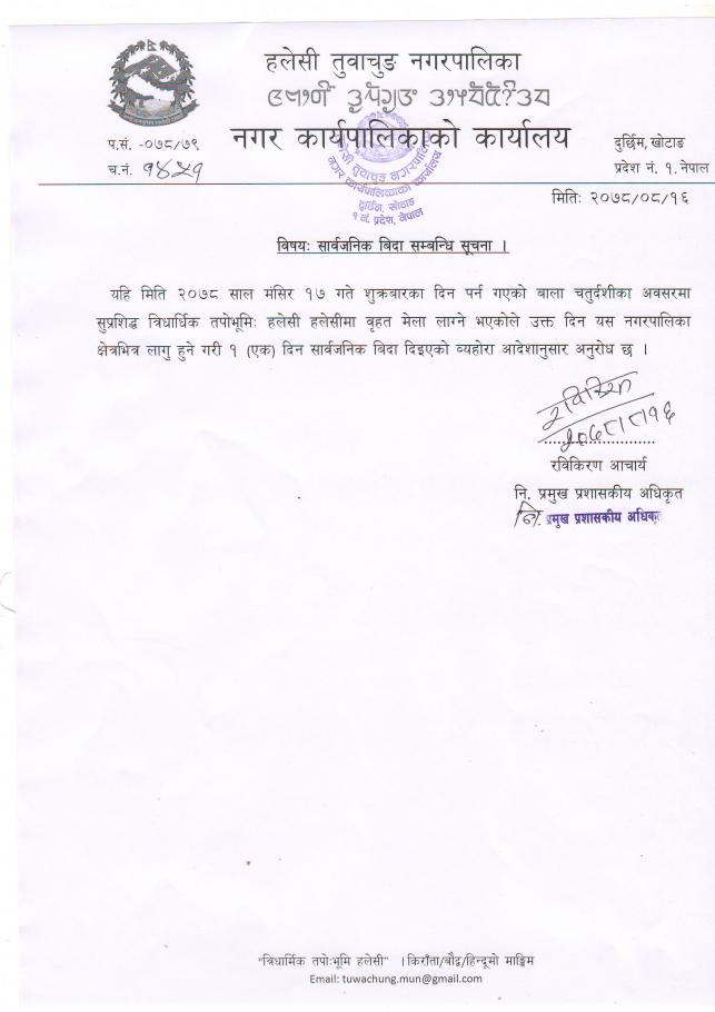 सार्वजनिक बिदा सम्बन्धमा ।। सूचना ।।