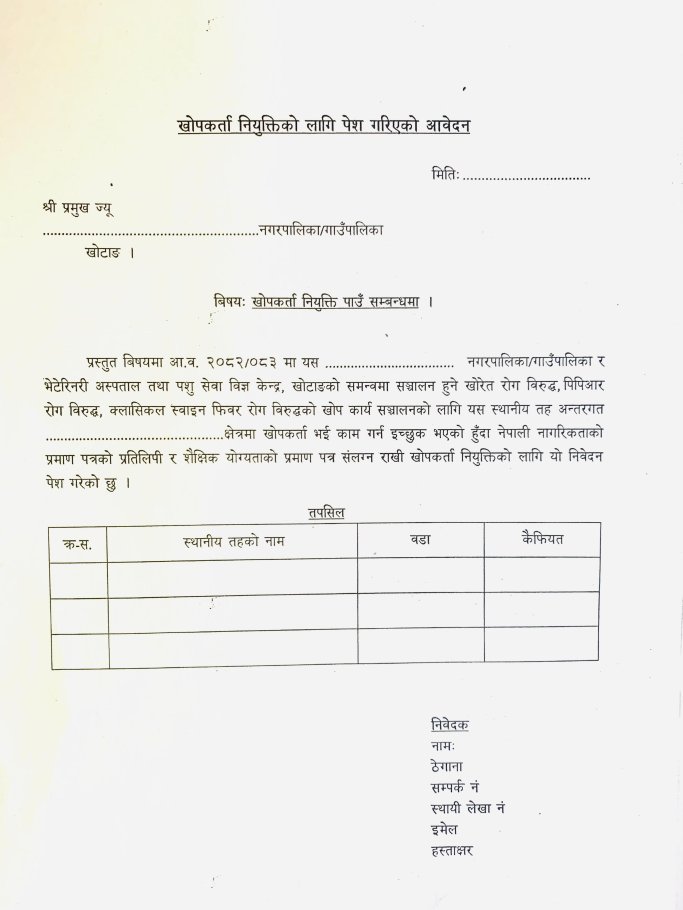 Vaccinator (खोपकर्ता) नियुक्तिको लागि आवेदन पेश गर्ने सम्बन्धी सूचना ।